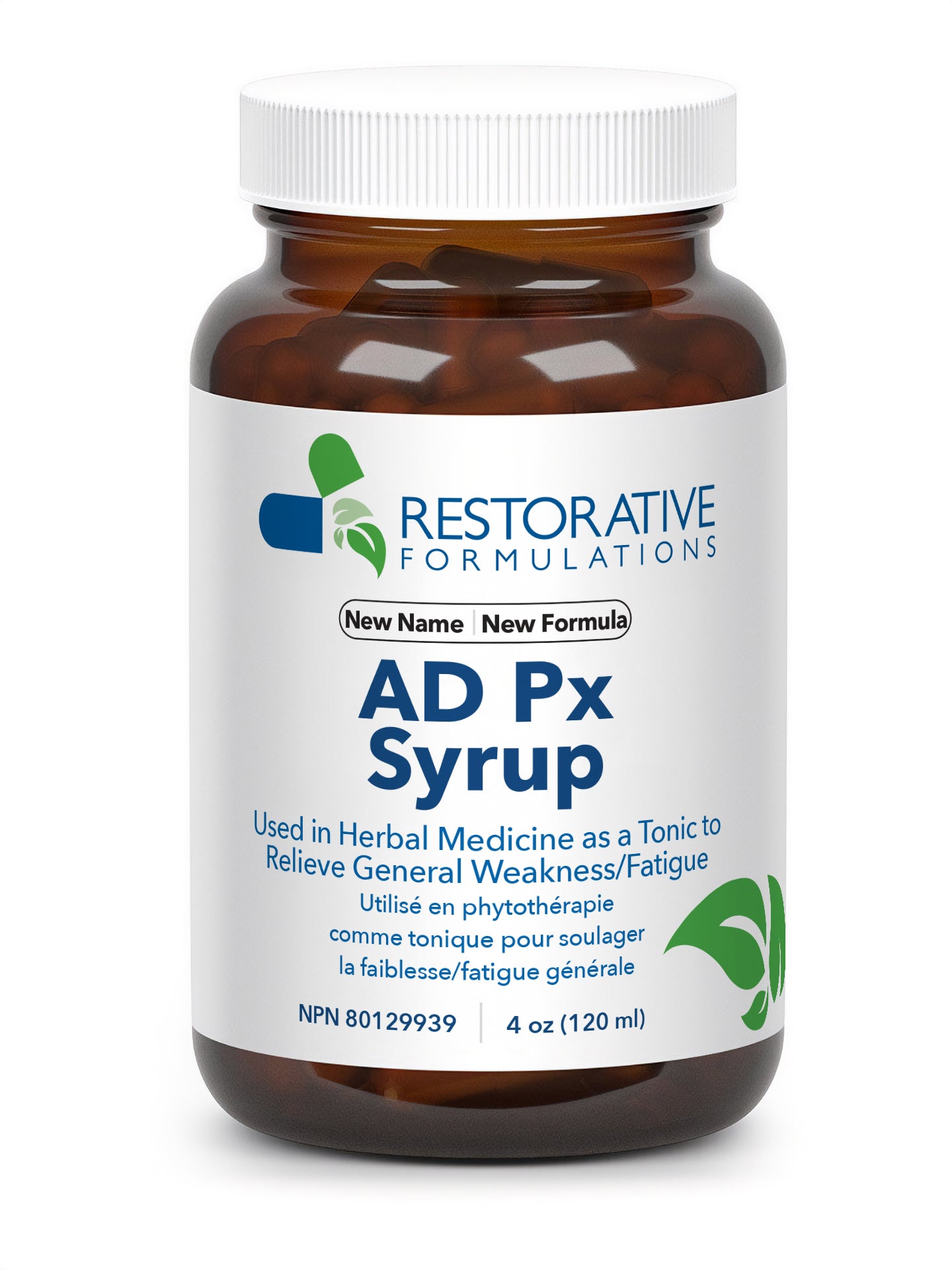 AD Px Syrup can be easily titrated for a smaller serving size and may be preferred by those who dislike or cannot tolerate pills. The syrup may be used as is, prepared with hot water to make a tea, or diluted with sparkling mineral water to make a refreshing cold beverage. For people who do not like the taste of licorice, the capsule is recommended over the syrup.