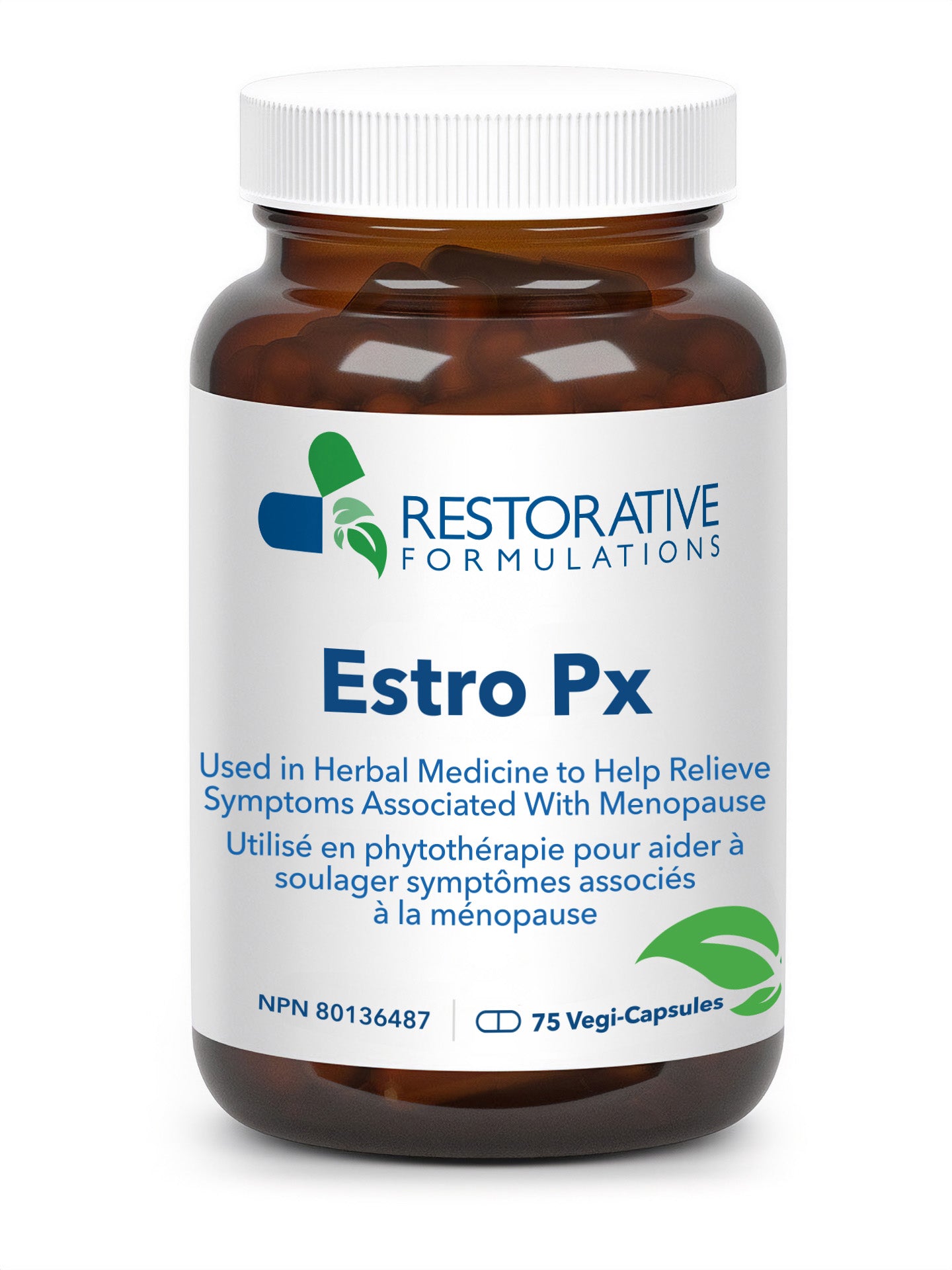 Estro-Px provides comprehensive herbal support during times of rapid hormonal changes, such as the menopausal transition. This unique combination of herbal extracts contains high levels of phytoestrogens, naturally-occurring plant substances that bind to estrogen receptor sites and promote estrogen-like activity. In addition, this formula has uterotonic properties and can help to maintain healthy prolactin and progesterone secretion.