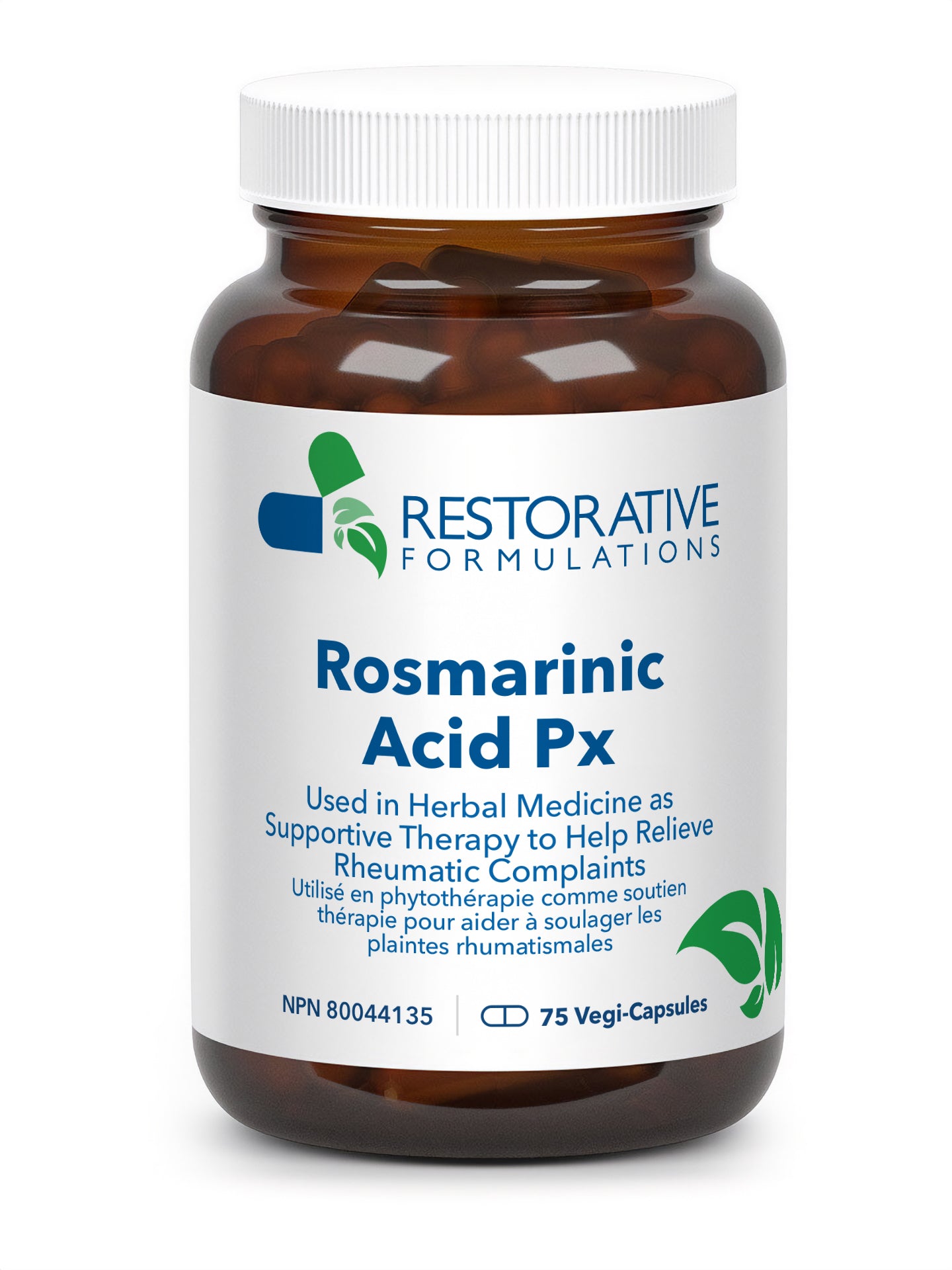 Rosmarinic Acid Px formula is rich in Rosmarinic Acid and Quercetin, both of which have potent antioxidant activity capable of supporting normal immune response. This formula maintains healthy nasal and gastric mucous membrane function and can help maintain neutrophil and eosinophil activity. Quercetin is a bioflavonoid and is optimally absorbed in its natural form. It helps to support the body's normal inflammatory response via balancing mast cell histamine release . Rosmarinic Acid is well studied for supporting healthy probiotic bacteria levels in the gastrointestinal tract.